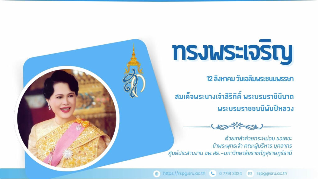ขอเชิญชวนประชาชนร่วมลงนามถวายพระพรชัยมงคล สมเด็จพระนางเจ้าสิริกิติ์ พระบรมราชินีนาถ พระบรมราชชนนีพันปีหลวง เนื่องในโอกาสวันเฉลิมพระชนมพรรษา วันที่ 12 สิงหาคม 2568 ผ่านระบบออนไลน์ ที่เว็บไซต์หน่วยราชการในพระองค์ wellwishes.royaloffice.th ระหว่างวันที่ 9 – 15 สิงหาคม 2568